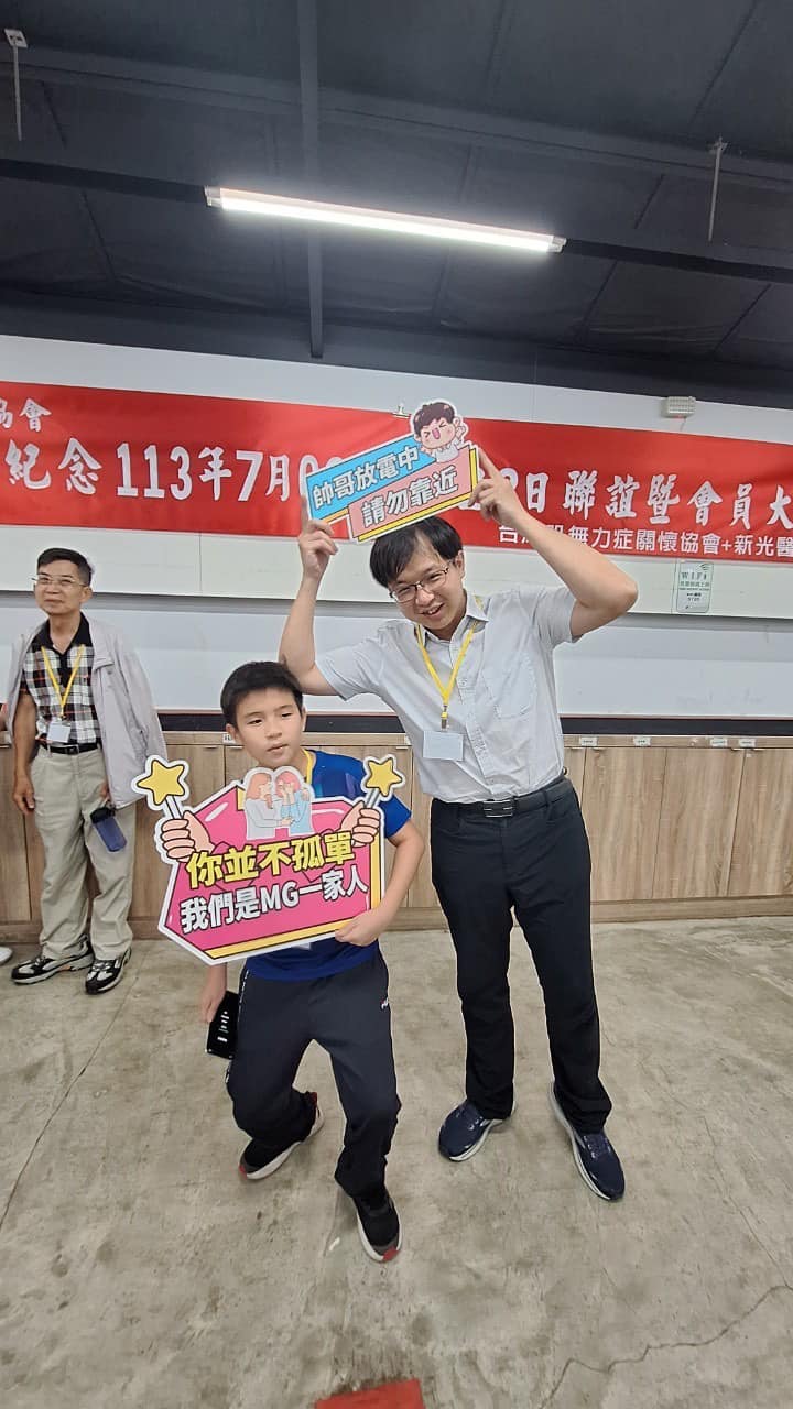 尤其特別感恩一路領軍,帶領我們往前邁進的邱浩彰教授、葉建宏副院長,以及所有參與肌無力症治療與關懷的醫護人員,他們的無私奉獻是我們患者最大的福音,更是病友們最堅強的後盾